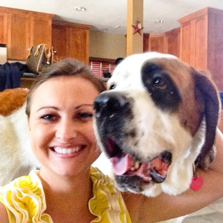 I hope I never forget the way you could compress all the energy in your body like a slinky. You'd scrunch yourself up and then the most epic wiggle would start with this doofy grin on your face and travel down your body all the way out the end of your tail. I want to remember your one set of black eyelashes and one set of white and the giant freckles on your nose, the way you always darted through the door to come in the house like you were so stealthy, and how much you loved being wrapped in fuzzy blankets (cold weather Saint you were not!). My heart hurts knowing you won't be upside down in the hallway when I walk in from the garage and that the tumbleweeds of white dog hair aren't going to come back 5 minutes after I vacuum this time. I have a feeling we'll still find strings of drool flung 10 feet up the wall for years to come though, and there's a gross smile in that.